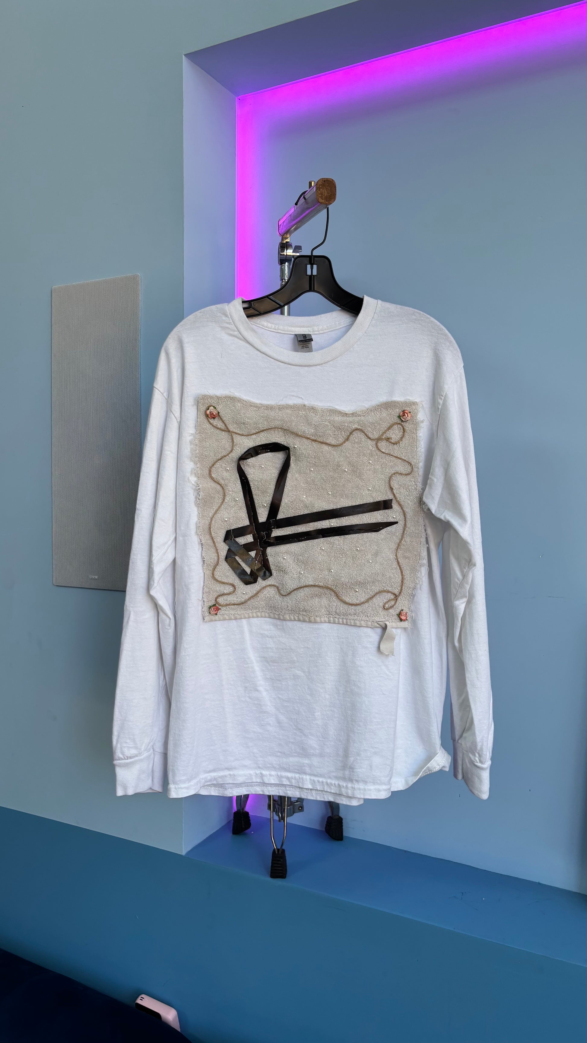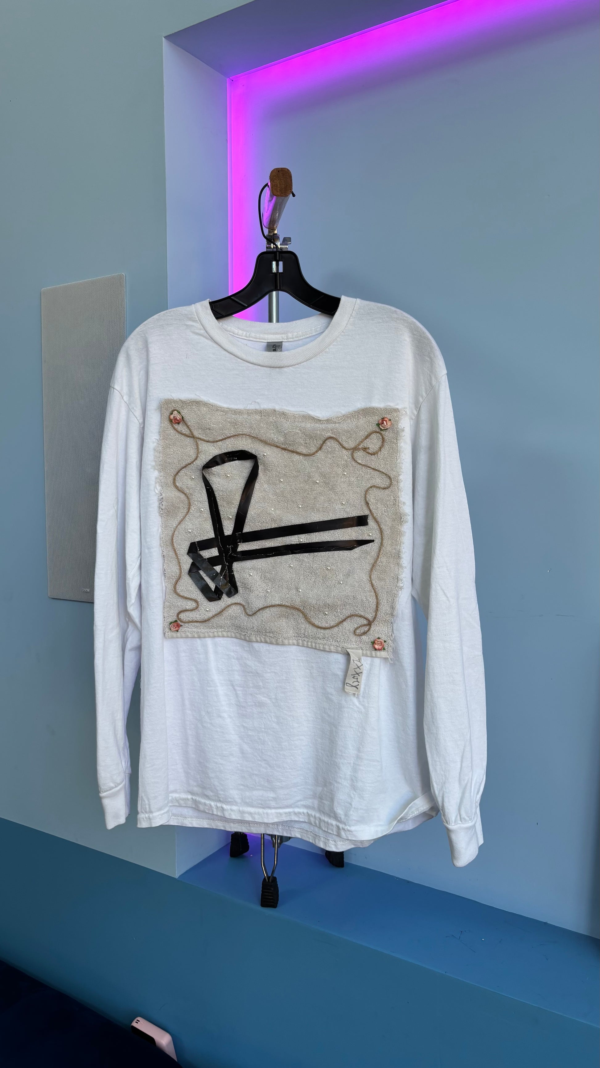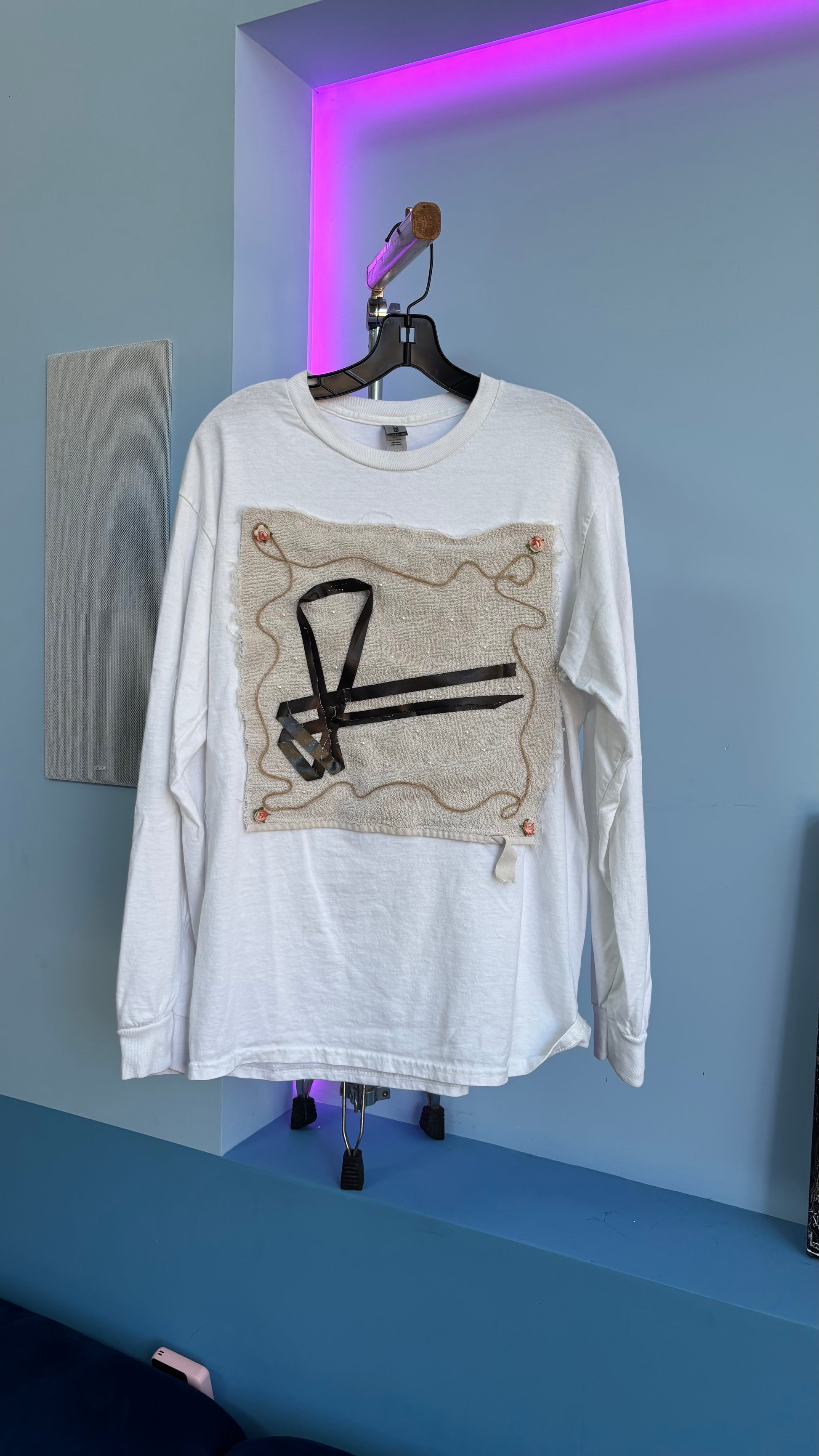 3d stitched towel with mini rope string outlining. This shirt has small roses on each corner.